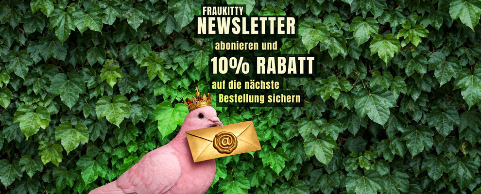 Abboniere den FrauKitty.de Newsletter und sichere Dir einen attraktiven 10%-Rabatt auf Deinen nächsten Einkauf. - Was ist neu, was wieder verfügbar, was befindet sich im Sale? Du erfährst es hier als Erste oder Erster.