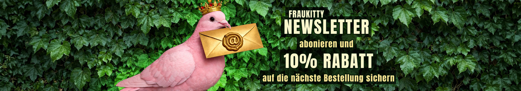 Abboniere den FrauKitty.de Newsletter und sichere Dir einen attraktiven 10%-Rabatt auf Deinen nächsten Einkauf. - Was ist neu, was wieder verfügbar, was befindet sich im Sale? Du erfährst es hier als Erste oder Erster.