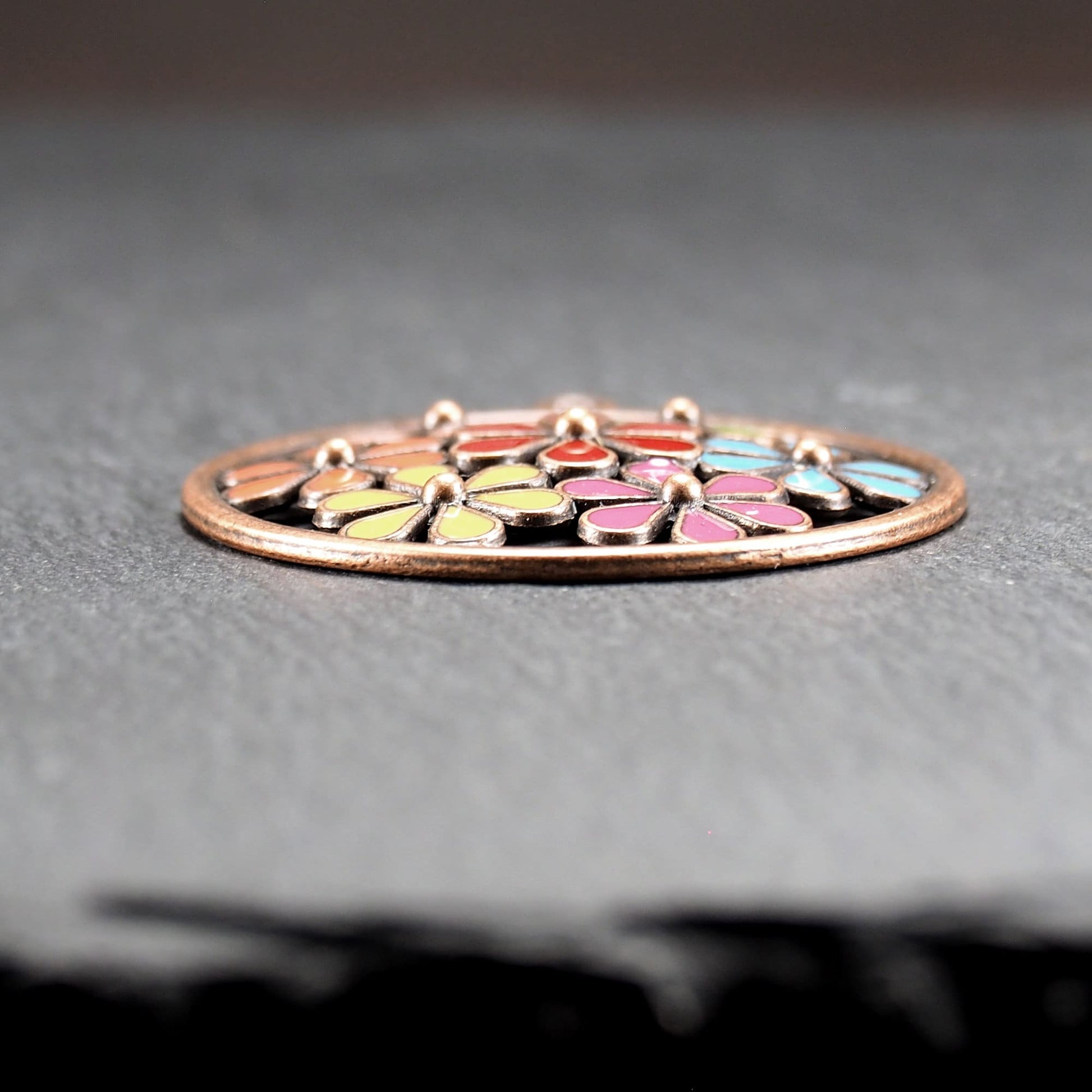 Anhänger runde bunte Blüten antik kupferfarben Emaille, 11140