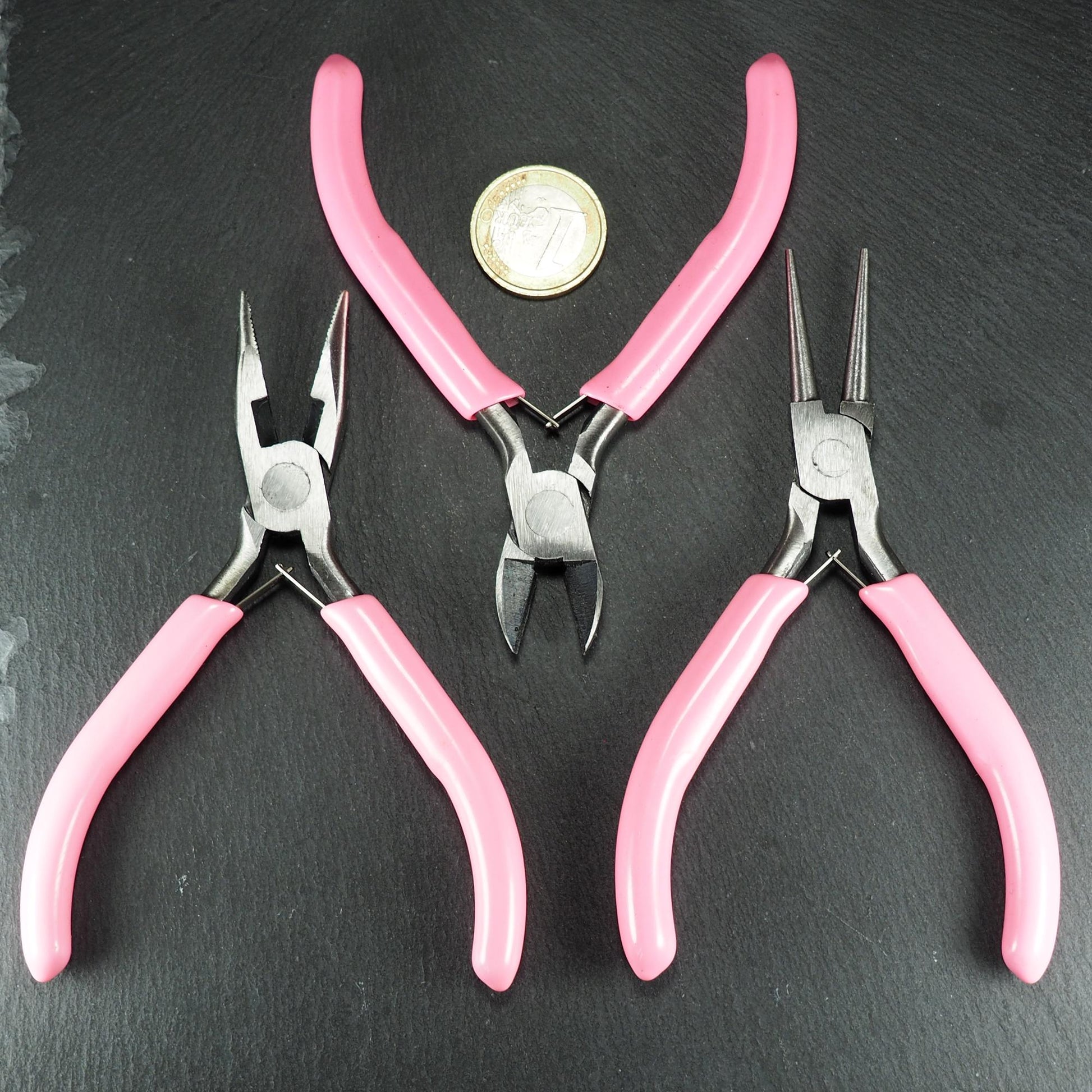 Schmuckzange Rundzange Kettenzange Seitenschneider, rosa Silikongriff, 11180