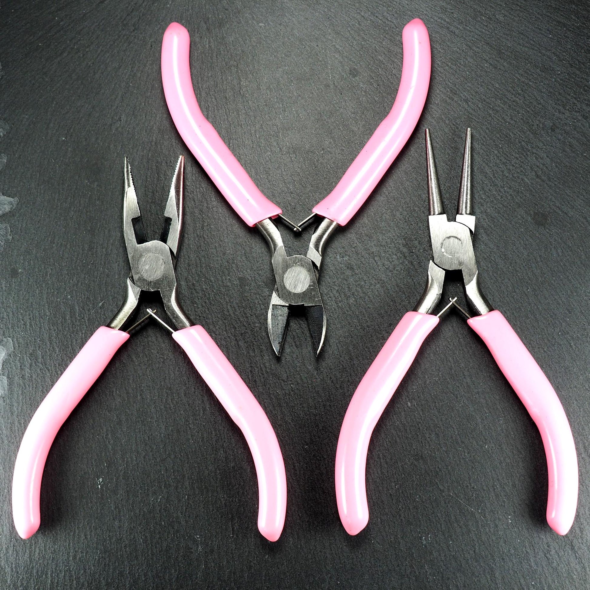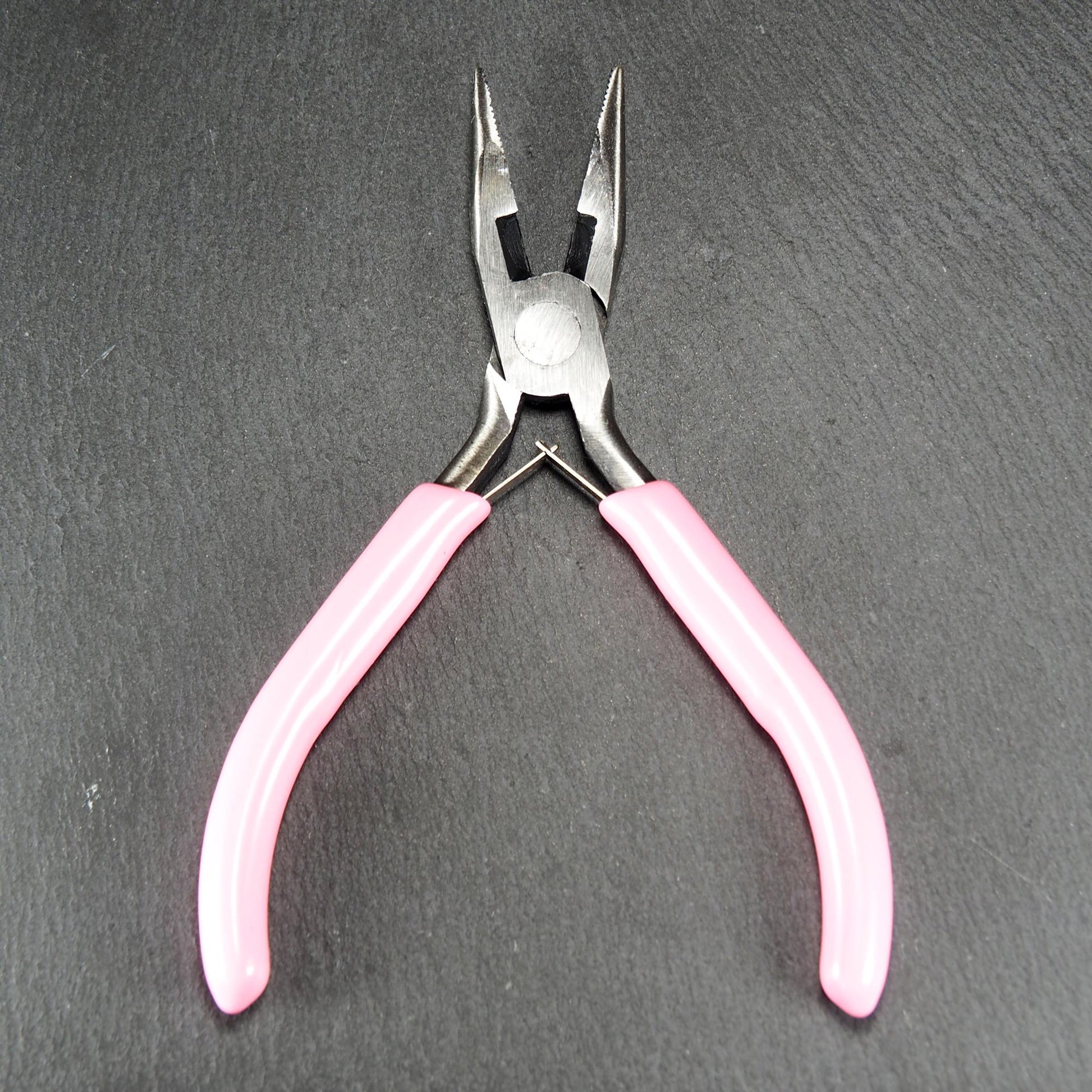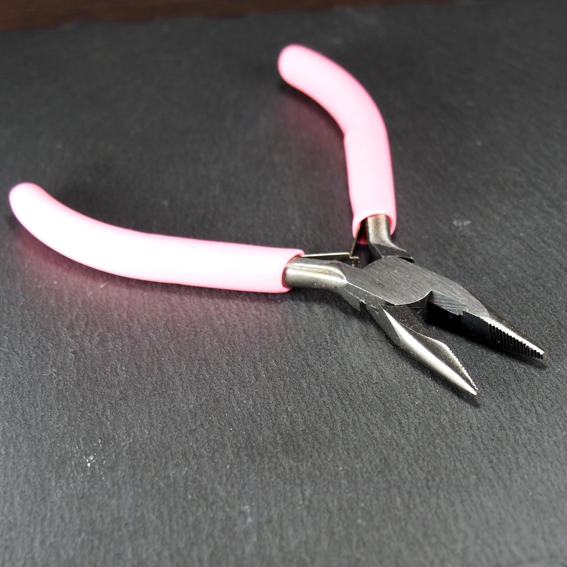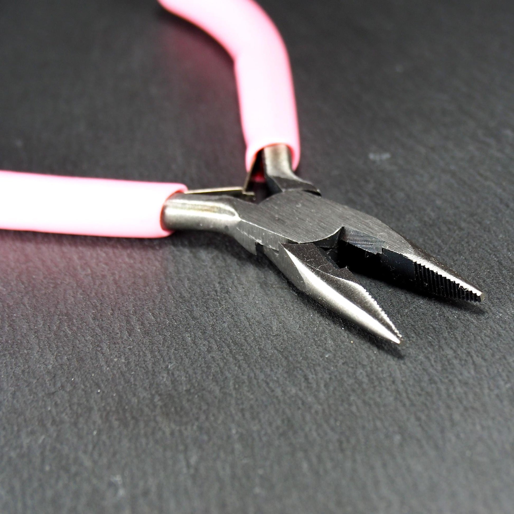 Praktische Schmuckzangen aus hochwertigem Stahl mit rutschfesten, rosa Silikongriffen. Diese Zangen sind vielseitig einsetzbar und eignen sich ideal für filigrane Arbeiten oder kräftige Schnitte im Schmuckhandwerk.